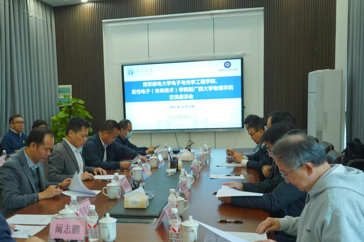 12月9日,南京邮电大学电子与光学工程学院、柔性电子(未来技术)学院院长余林蔚一行来院调研交流,学院院长刘宏邦陪同调研,学院党委书记蒋津辉陪同调研并主持座谈会。自治区科技厅科技人才与科普处处长罗锦模专程到校参与活动并指导工作。
